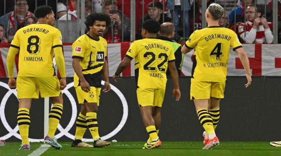 Karim Adeyemi marque le premier but pour Dortmund (10e) d’une frappe croisée du gauche qui bat le gardien Sven Ulreich. C’est Julian Ryerson qui marque le but du (2-0) à la 83e d’un tir croisé qui bat le gardien bavarois. Cette défaite envoie les Bavarois à 13 points du Bayer Leverkusen vainqueur de Hoffenheim (2-1).